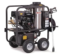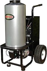 This large unit actually uses an induction motor. It’s an electric pressure washer with a diesel component to keep the water hot, so you’re getting the best of both worlds. You’ll also have 5 different quick connect tips, which means you’re able to easily clean many different surfaces including residential and commercial. The whole thing is made with welded steel for durability and it offers a 50’ Armor hose for durability. At in the industrial triplex unloader that improves pump maintenance and you’re definitely getting something you can count on.